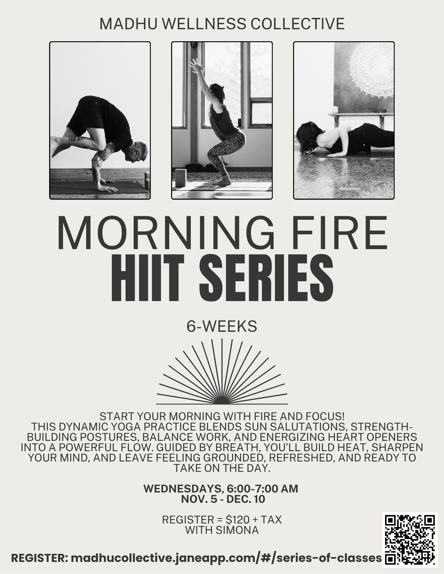 A 6-week workshop series: Start your morning with fire and focus. This dynamic yoga practice blends sun salutations, strength-building postures, balance work, and energizing heart openers into a powerful flow. Guided by breath, you’ll build heat, sharpen your mind, and leave feeling grounded, refreshed, and ready to take on the day.